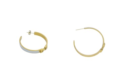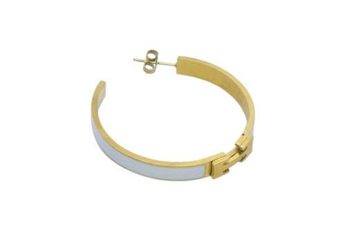 Generic - اقراط حلقية من الستانلس ستيل مع ترصيع مينا ابيض للنساء - ذهبي