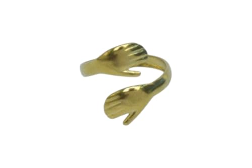Generic - خاتم مفتوح من الستانلس ستيل بتصميم عناق - ذهبي