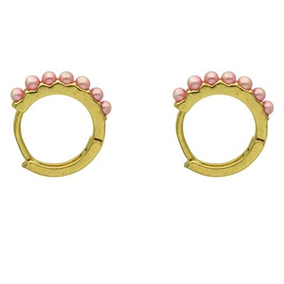 Generic - اقراط حلقية من الستانلس ستيل مع لمسات بلون بينك للنساء - ذهبي