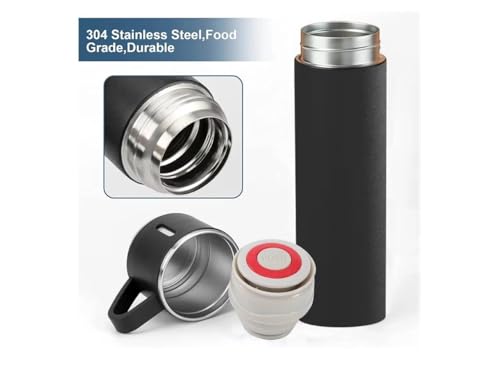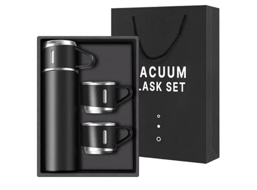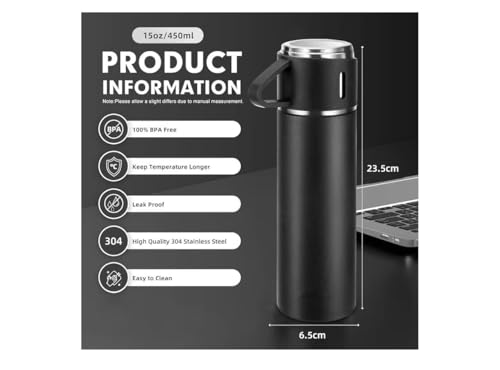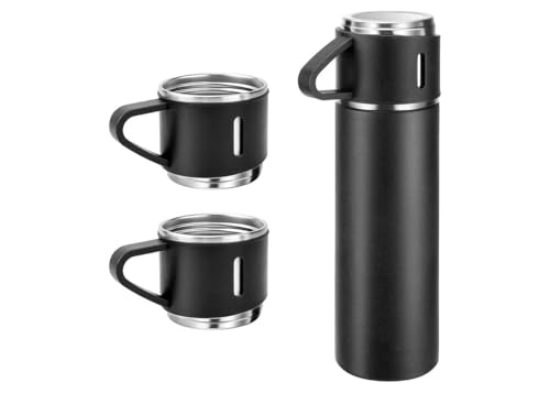 Generic - زجاجات معزولة للقهوة من الستانلس ستيل، زجاجة مياه معزولة بتفريغ الهواء، 500 مل، أسود، مع ثلاثة أكواب للمشروبات الساخنة والباردة
