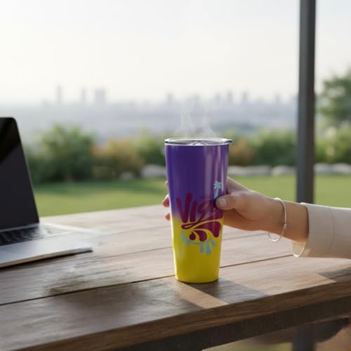 Generic - كوب حراري معزول من الستانلس ستيل – غطاء شفاف محكم، يحافظ على حرارة وبرودة المشروبات، تصميم أنيق متعدد الألوان، مثالي للسفر والعمل والهدايا (بنفسجي في اصفر)