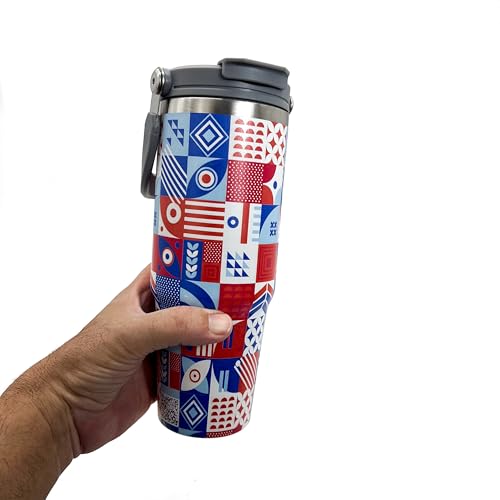 Generic - كوب معزول من الفولاذ المقاوم للصدأ الآمن غذائيًا مع غطاء 2 في 1 - 890 ملليلتر، طباعة بتصميم فريد ومقاوم للتسرب ويحافظ على المشروبات الساخنة لأكثر من 7 ساعات والمشروبات الباردة لأكثر من 10 ساعات