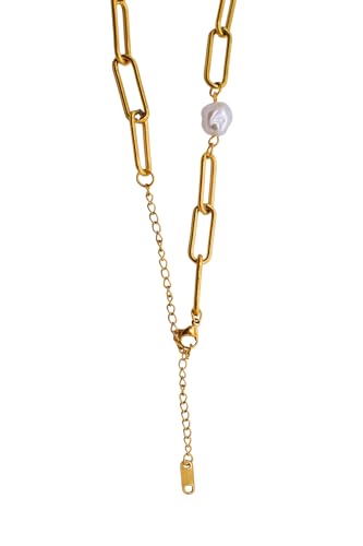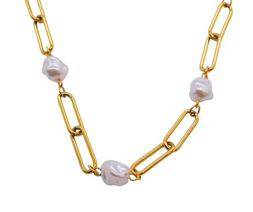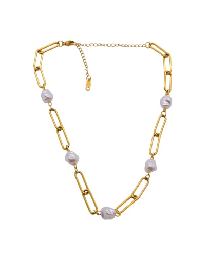 Generic - عقد بسلسلة من اللؤلؤ بشكل غير منتظم من الستانلس ستيل للنساء - ذهبي
