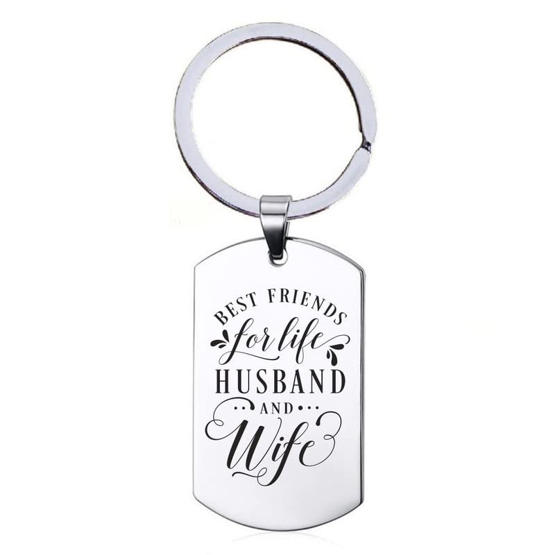mcliving - حلقة مفاتيح من الستانلس ستيل - افضل اصدقاء الحياة للزوج والزوجة، فضي