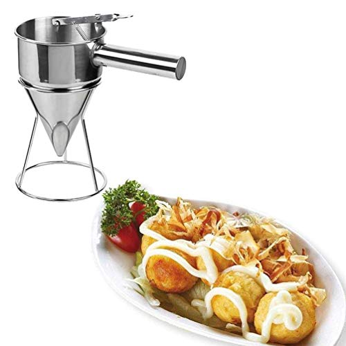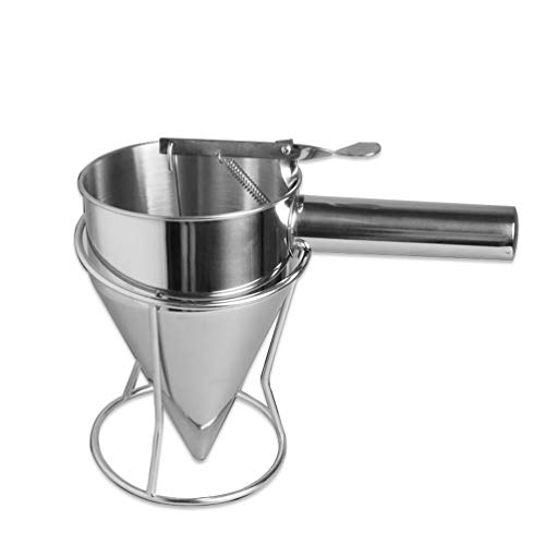 Other - قمع مطبخ من الستانلس ستيل مع مقبض ورف حامل، مثالي لكلا السوائل، فضي