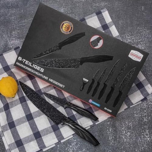 - COMPLETE 6-PIECE KITCHEN KNIFE SET – This versatile kitchen knife set includes three multi-purpose knives, a durable cleaver, vegetable peeler, and kitchen scissors to support a wide range of food preparation tasks. Whether you are slicing vegetables, cutting meat, or preparing ingredients for everyday cooking, the set provides essential tools designed to simplify meal preparation.