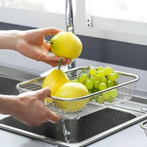 Generic - سلة تصريف لحوض المطبخ من الستانلس ستيل، شبكة دقيقة لمنع بقايا الطعام، مثالية لغسل الفواكه والخضروات وتجفيف الاطباق