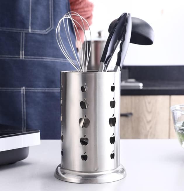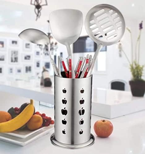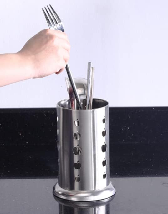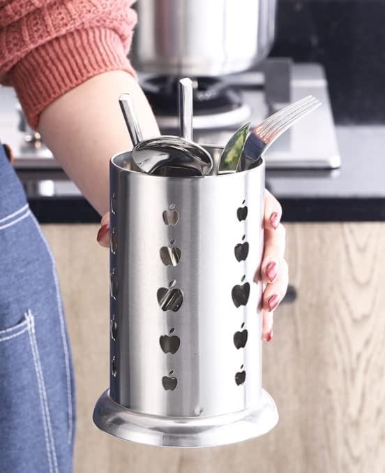 SKPYFD - حامل أدوات المطبخ من الفولاذ المقاوم للصدأ لتنظيم أدوات المائدة الفضية مع فتحات تصريف دائرية للشوك والسكاكين والمعالق وعيدان الطعام، صغير