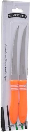 Dollar for Import - طقم سكاكين ستانلس ستيل مشرشرة، برتقالي، قطعتين، مقابض مريحة مانعة للانزلاق من دولار لاستيراد الادوات المنزليه
