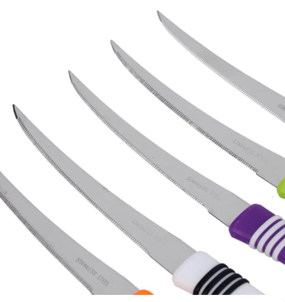 - متعددة الاستخدامات: مناسبة لتقطيع الطماطم وتقشير الفواكه واستخدامها كسكاكين مائدة عملية للمهام السريعة
