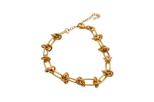 Generic - سوار سلسلة بحلقات على شكل عقدة من الستانلس ستيل مع مشبك لوبستر، مقاس واحد - ذهبي FA192