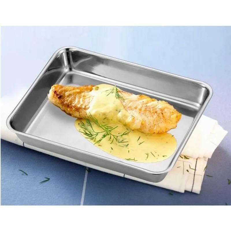 - ✅ ستانلس ستيل قوي – مقاوم للصدأ وسهل التنظيف ✅ مقاس كبير 52 × 33 سم – مثالي للعزومات ✅ مناسب للفخذة، اللحوم، الدجاج، وصواني الخضار ✅ تقدري تضيفي شبكة فوقها للشوي بسهولة ✅ مستورد – جودة عالية تدوم طويلاً ✅ تصميم احترافي يناسب استخدام المطابخ الكبيرة أو العائلية