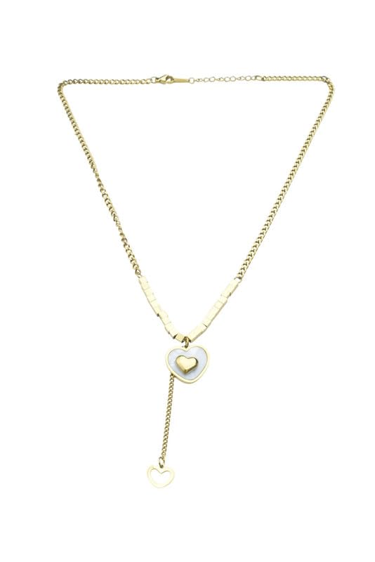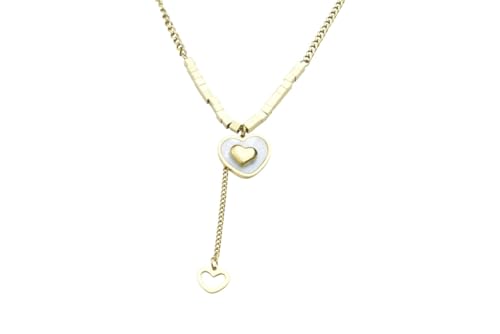 Generic - عقد بقلادة على شكل قلب لاريات من الستانلس ستيل للنساء - ذهبي وابيض