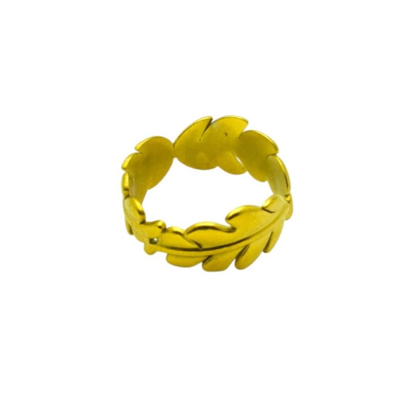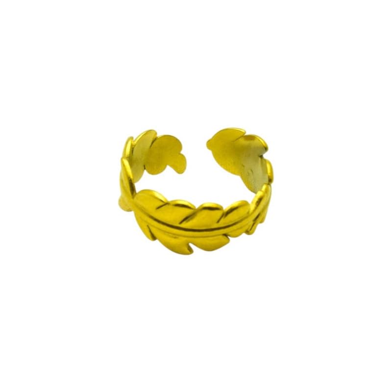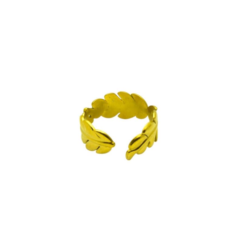 Generic - خاتم عريض مفتوح من الستانلس ستيل بتصميم ورقة الغار للنساء، مقاس واحد - ذهبي