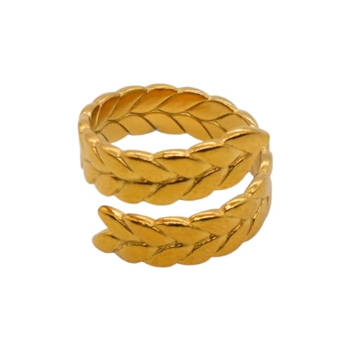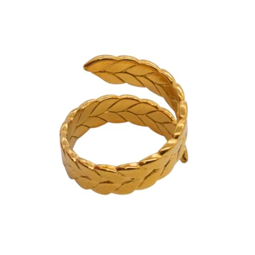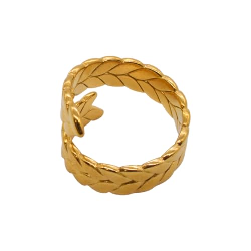 Generic - خاتم للنساء من الستانلس ستيل بتصميم اكليل الغار، مقاس واحد - ذهبي FA312