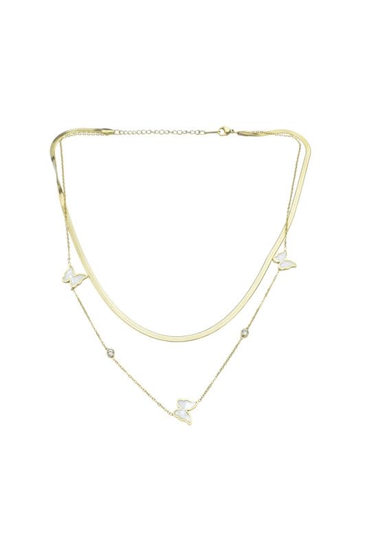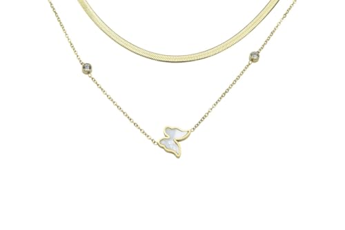 Generic - عقد من الستانلس ستيل بطبقات على شكل فراشة للنساء - ذهبي