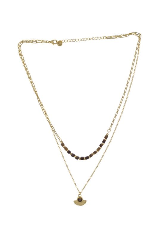 Generic - عقد بقلادة متعددة الطبقات من الستانلس ستيل مع خرز بني للنساء - ذهبي