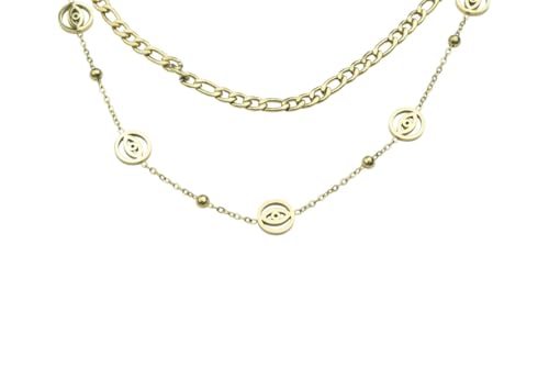 Generic - قلادة فيجارو ودلاية متعددة الطبقات من الستانلس ستيل للنساء - ذهبي