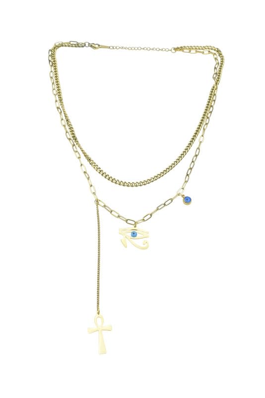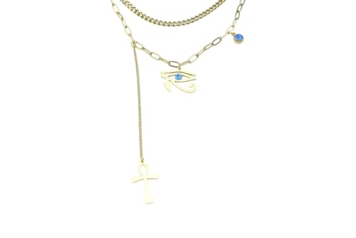 Generic - عقد متعدد الطبقات من الستانلس ستيل بتصميم مستوحى من مصر للنساء - ذهبي