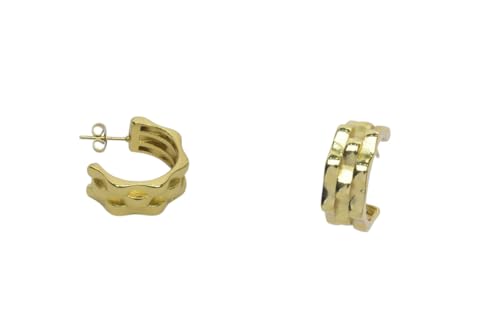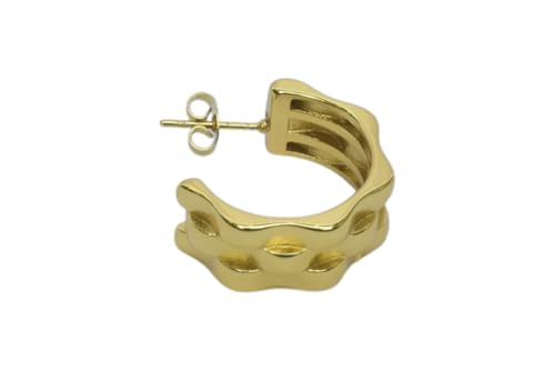 Generic - اقراط حلقية مموجة بطبقات من الستانلس ستيل للنساء - ذهبي