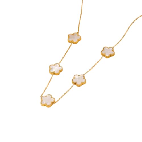 Generic - عقد من الستانلس ستيل بتصميم ورقة البرسيم للنساء بلون ابيض