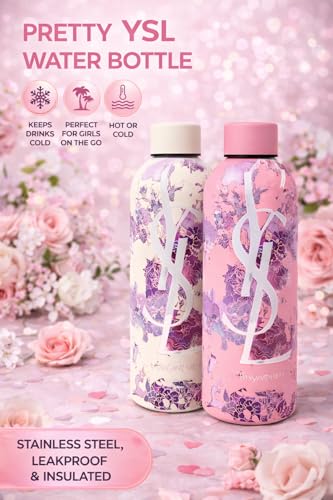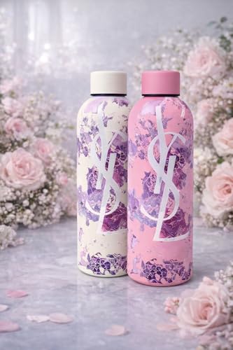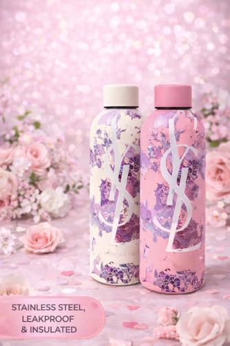 Generic - زجاجة مياه بتصميم اوراق شجر من الستانلس ستيل - زجاجة شرب انيقة قابلة لاعادة الاستخدام للاستخدام اليومي للبنات للمدرسة وصالة الالعاب الرياضية والاماكن الخارجية (اوف وايت)