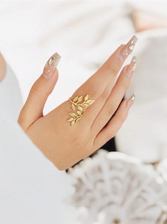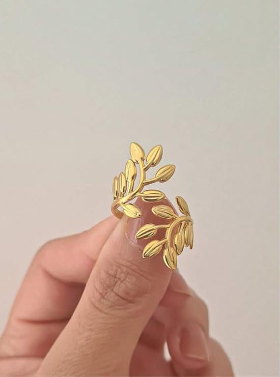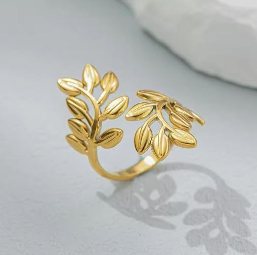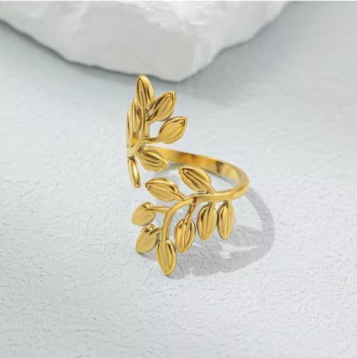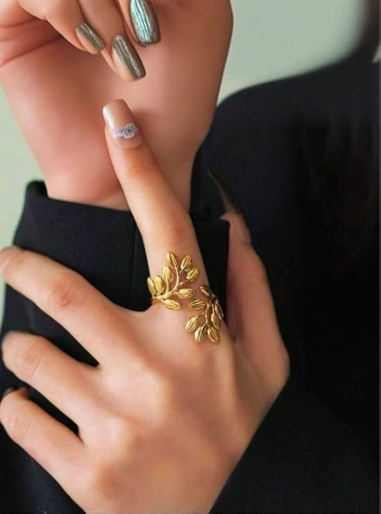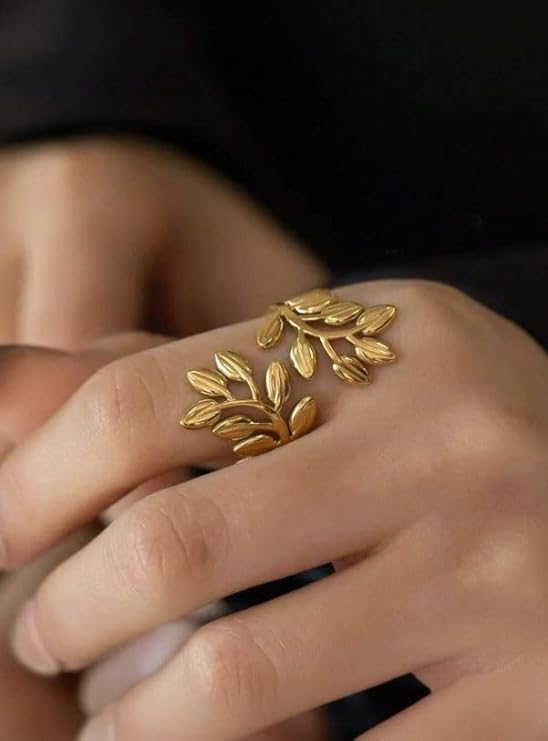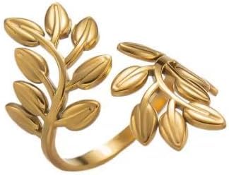 Generic - خاتم من الستانلس ستيل بتصميم ورقة شجر للنساء، سوار عريض مزين بالزهور