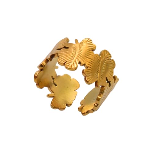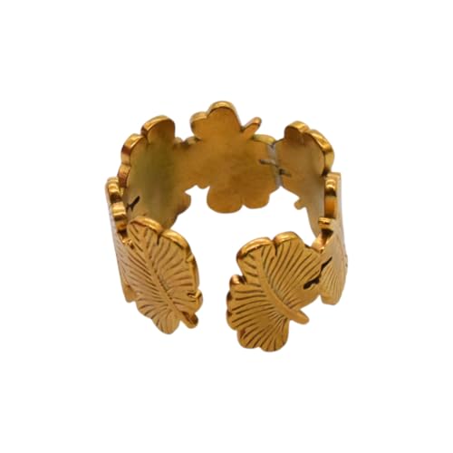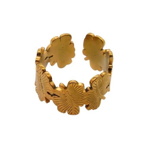 Generic - خاتم للنساء من الستانلس ستيل على شكل اوراق شجر، مقاس واحد - ذهبي