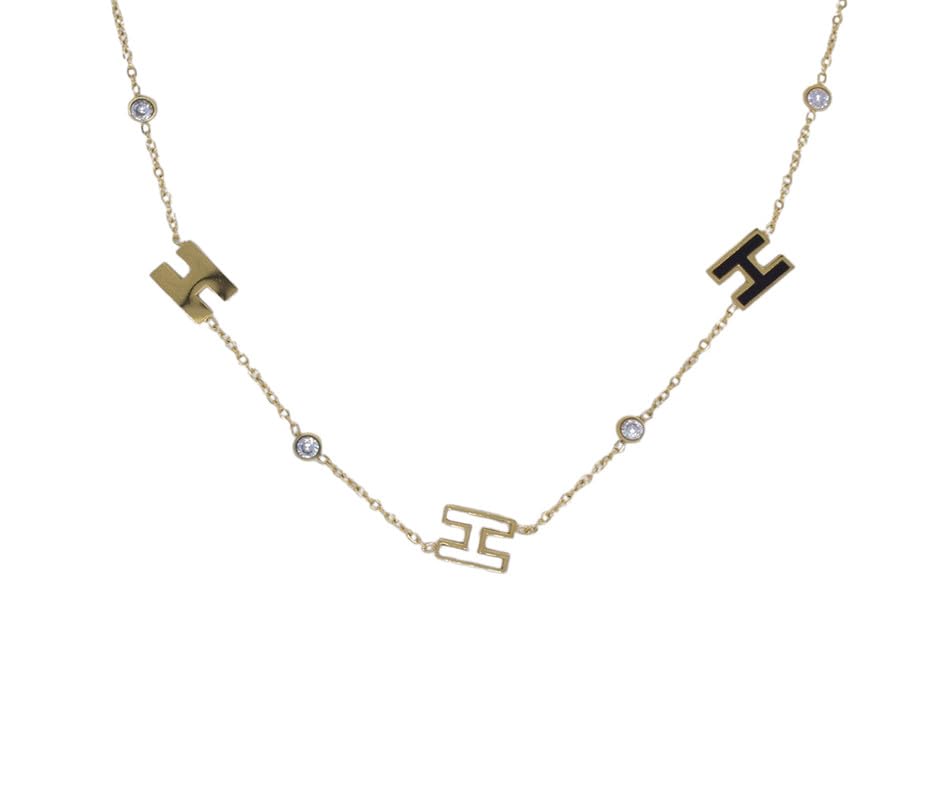 Generic - عقد من الستانلس ستيل بحروف "H" وحجر شفاف للنساء - ذهبي
