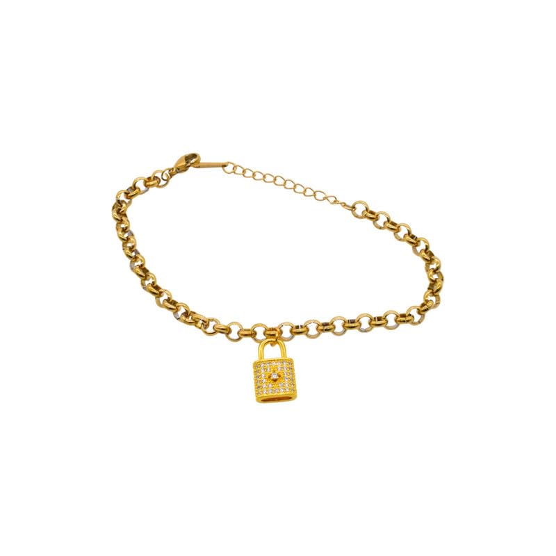 Generic - سوار بدلاية قفل من الستانلس ستيل للنساء - ذهبي