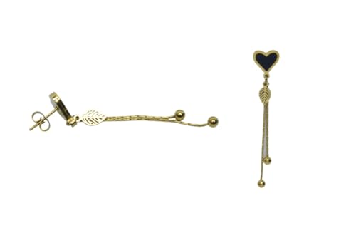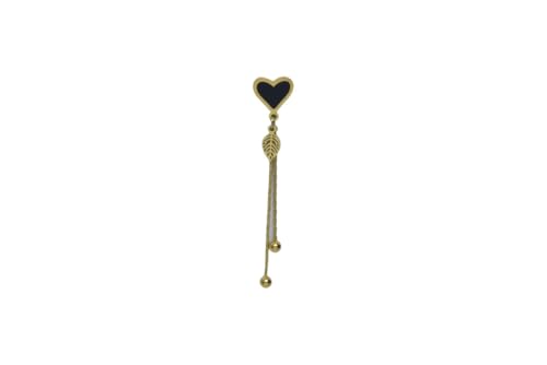 Generic - حلق طويل من الستانلس ستيل بتصميم قلب وورقة شجر للبنات - ذهبي واسود