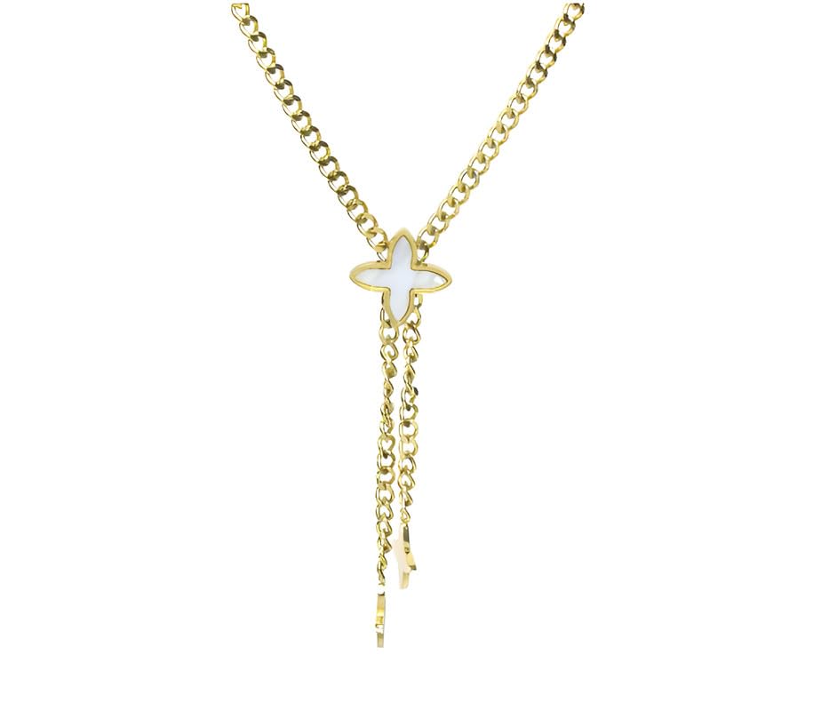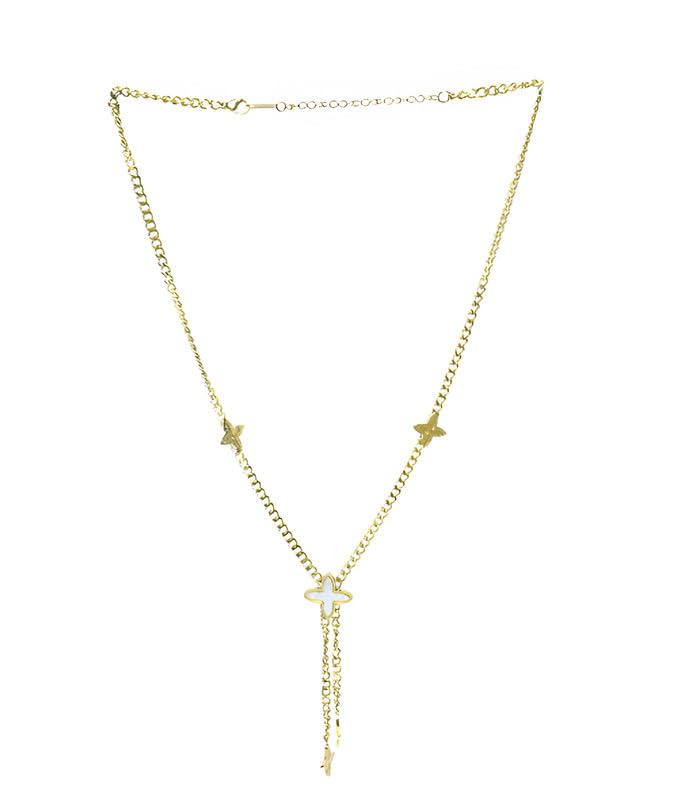 Generic - عقد طويل من الستانلس ستيل بتصميم نجمة للبنات - ذهبي وابيض