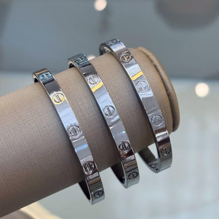 Generic - سوار الحب من الفولاذ المقاوم للصدأ، فضي، تصميم مسمار، قفل بمفصلات