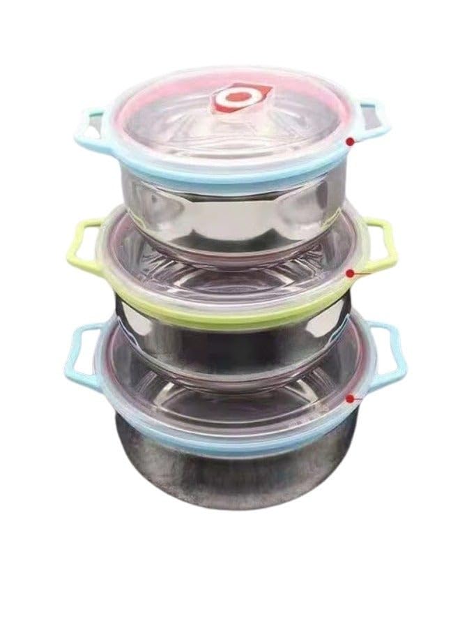 Generic - طقم علب غداء من الفولاذ المقاوم للصدأ، بأحجام متنوعة، مع أغطية. ٣ قطع
