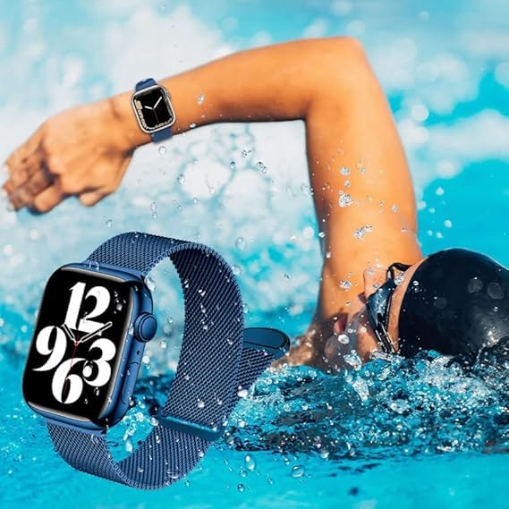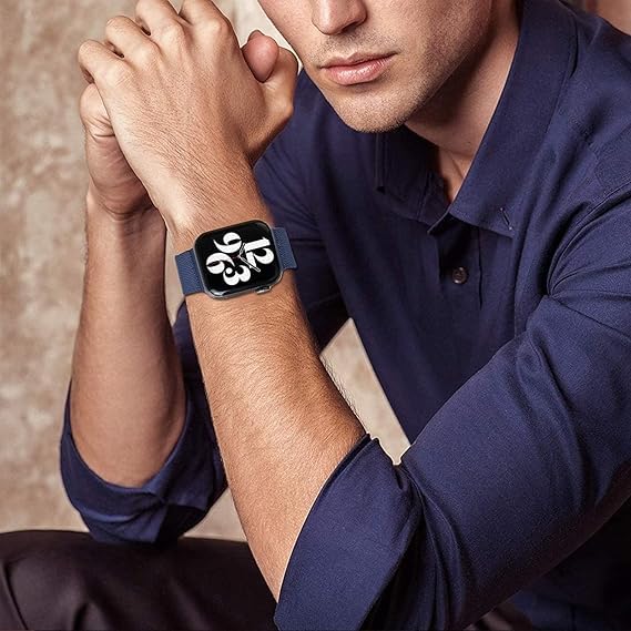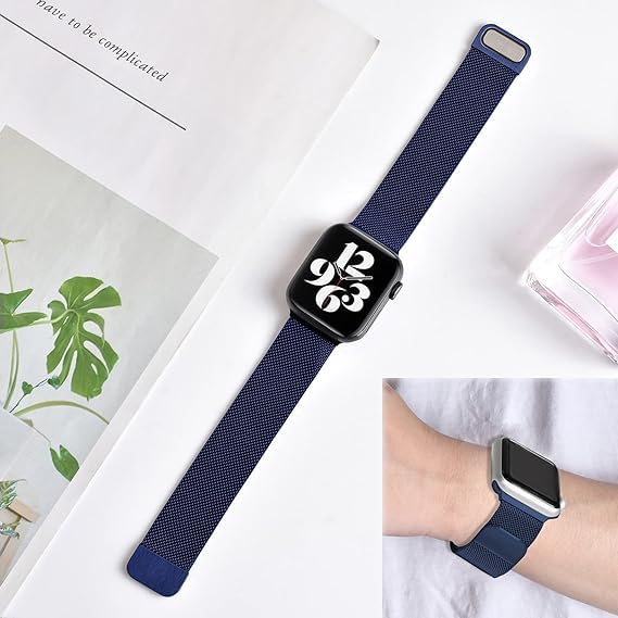 Generic - سوار مغناطيسي من الستانلس ستيل متوافق مع ساعة ابل 49 ملم 45 44 42 معدني ميلانيز قابل للتعديل للرجال والنساء لسلسلة اي ووتش 8 - 7 - 6 - 5 - 4 - 3 - 2 - 1 - SE - الترا لون ازرق