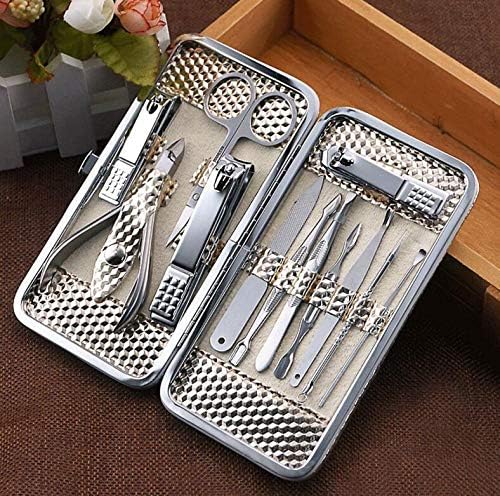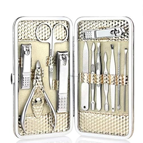 غير معروف - مجموعة العناية باظافر اليدين المصنوعة من الستانلس ستيل 12 قطعة، ادوات العناية بالاظافر مع قصاصة اظافر صغيرة ومقص ومبرد