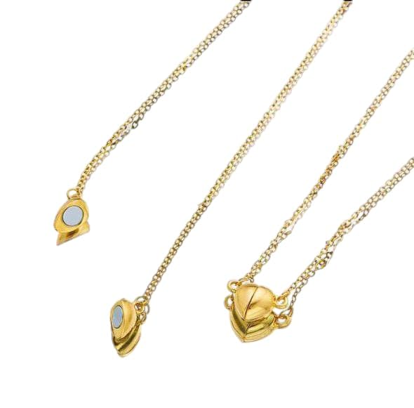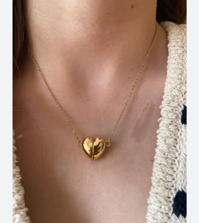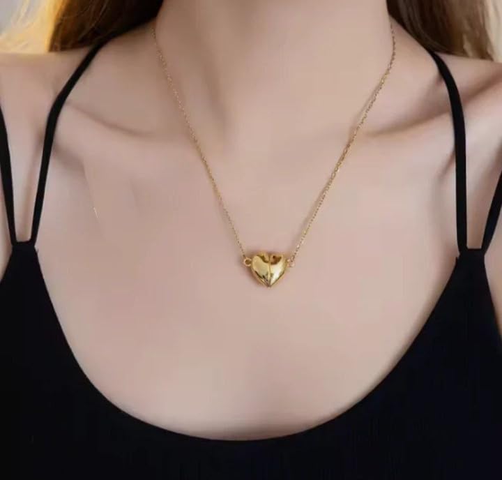 Generic - سلسله متطابقة من ستانلس استيل بدلاية شكل قلب بدون احجار كريمة هدية للبنات والازواج واعز الاصدقاء وعلاقات المسافات الطويلة لون ذهبى