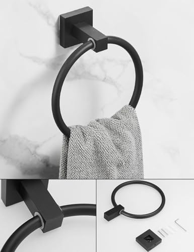 LSDZHK - حلقة منشفة حمام سوداء غير لامعة من الستانلس ستيل، حامل مناشف الحمام يثبت على الحائط لتنظيم الحمام والمطبخ (اسود - رود)