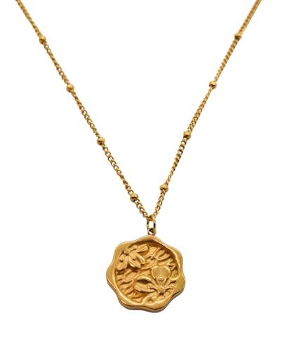 Generic - عقد بدلاية على شكل ميدالية من الستانلس ستيل للنساء - ذهبي