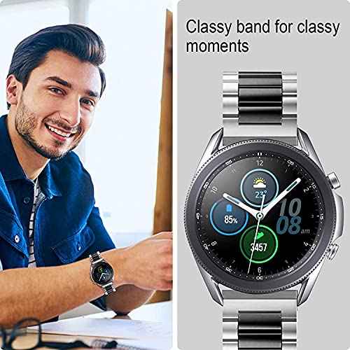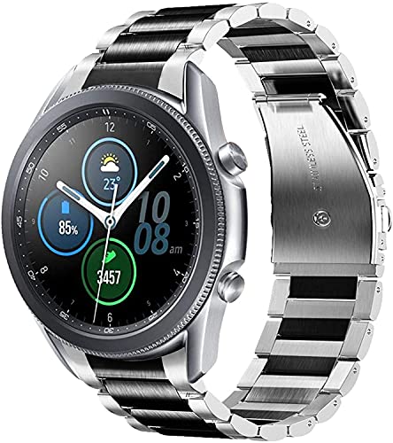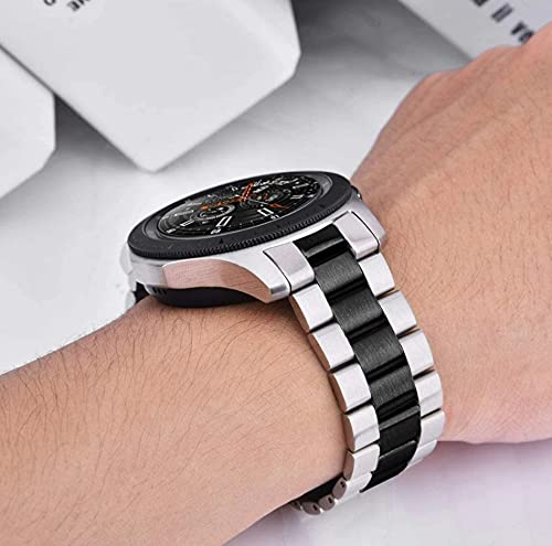 Smart Stuff - سوار معدني من الفولاذ المقاوم للصدأ لساعة سامسونج جالاكسي 3 / ساعة جالاكسي 46 ملم / جير S3 فرونتير وكلاسيك / هواوي GT2 / GT2e / GT2 برو من سمارت ستاف - مزدوج فضي / أسود