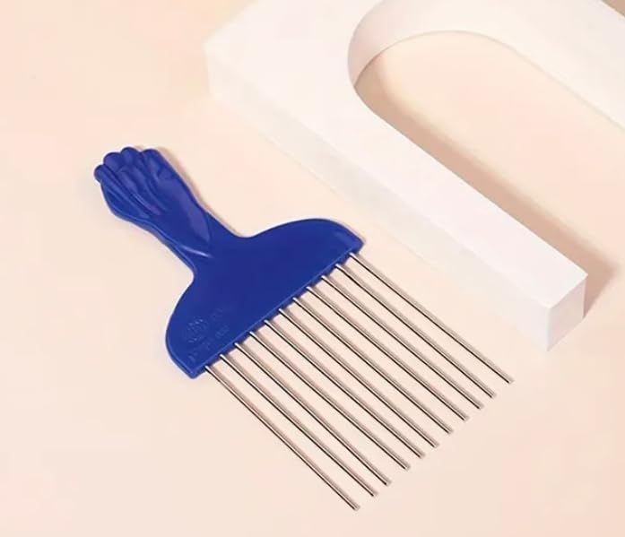 Generic - مشط معدني من الفولاذ المقاوم للصدأ بأسنان واسعة، أداة لتصفيف الشعر بيد مريحة أثناء الاستخدام لون ازرق