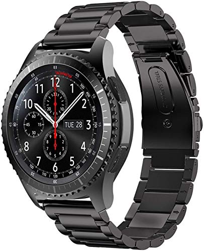 Generic - سوار معدني من الفولاذ المقاوم للصدأ لساعة جالاكسي جير سبورت/جير S2 كلاسيك، سريع الفك (أسود)