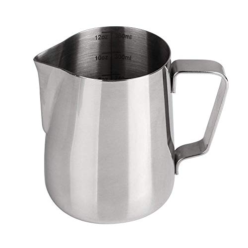 generic - ابريق من الستانلس ستيل لصنع رغوة الحليب والقهوة والكابتشينو والاسبريسو والكريمة لفن اللاتيه، 12 اونصة، 350 مل، 137587