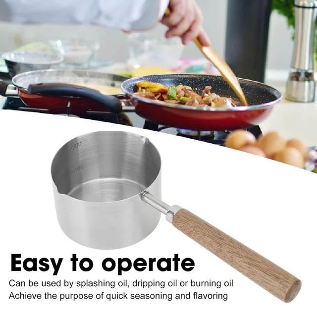 Generic - قدر صغير من الفولاذ المقاوم للصدأ بمقبض خشبي عملي مقاس 300ml