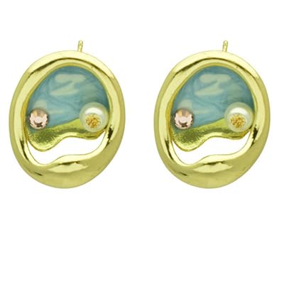 Generic - اقراط صغيرة من الستانلس ستيل بتصميم منظر طبيعي للنساء - لون ذهبي