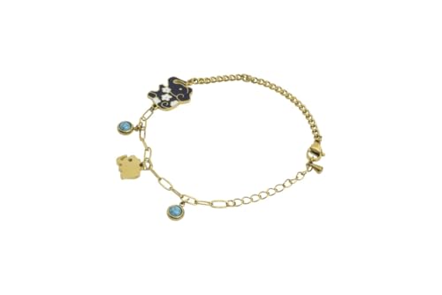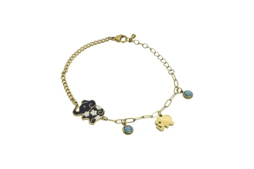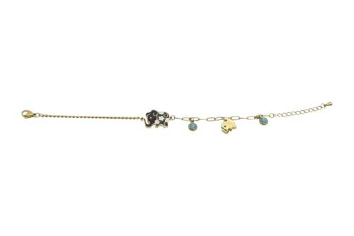 Generic - سوار بدلاية على شكل فيل بسلسلة مختلطة من الستانلس ستيل مع احجار زرقاء للنساء - ذهبي