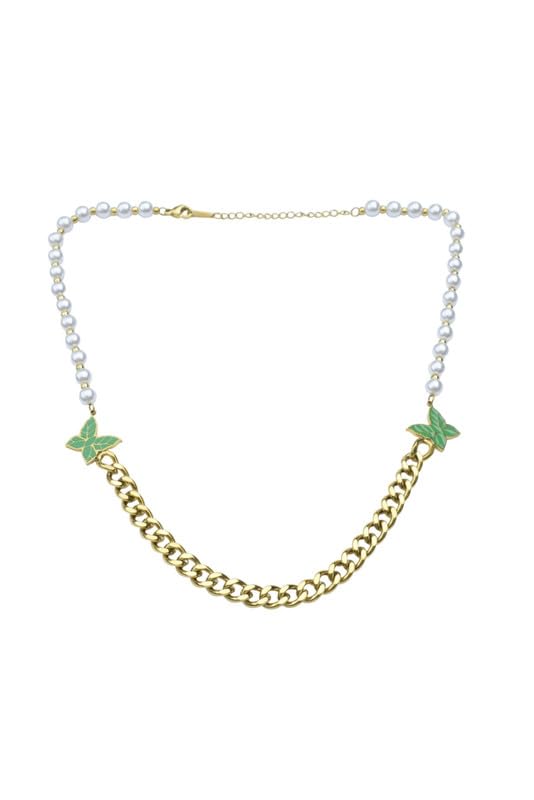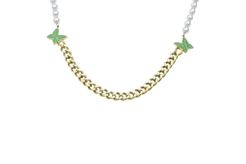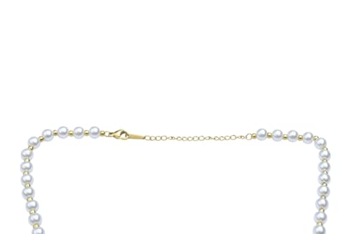 Generic - عقد بسلسلة من اللؤلؤ واللؤلؤ من الستانلس ستيل للنساء - ذهبي