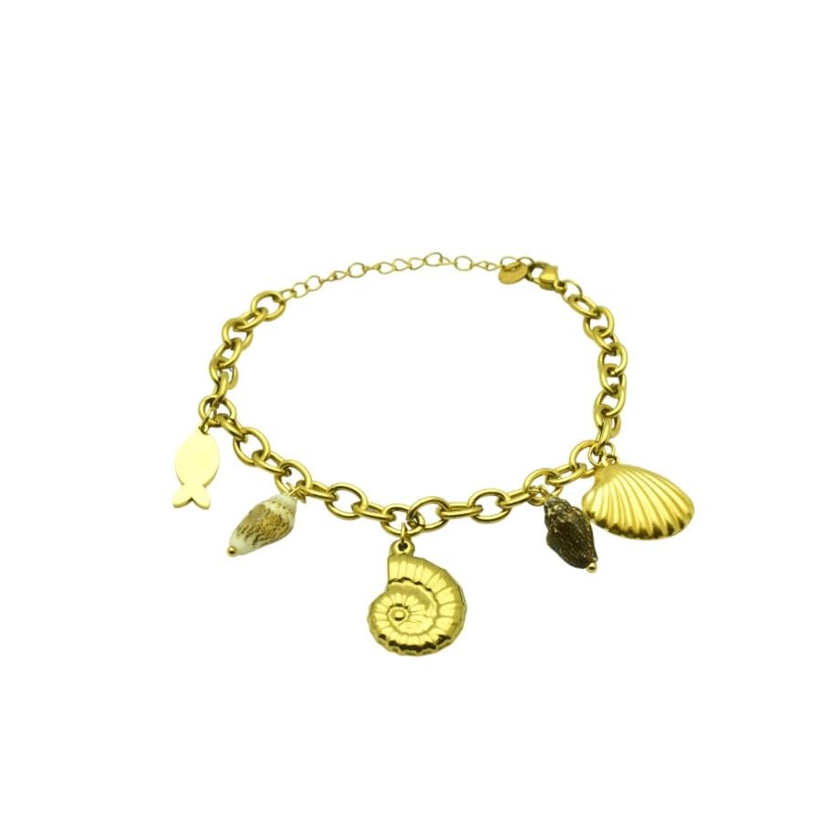 Generic - سوار بدلاية مختلطة من الستانلس ستيل بتصميم بحر للنساء - ذهبي