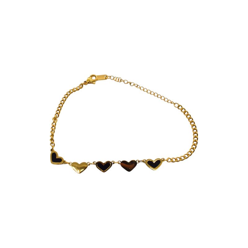 Generic - سوار سلسلة متعدد القلوب من الستانلس ستيل للنساء - ذهبي