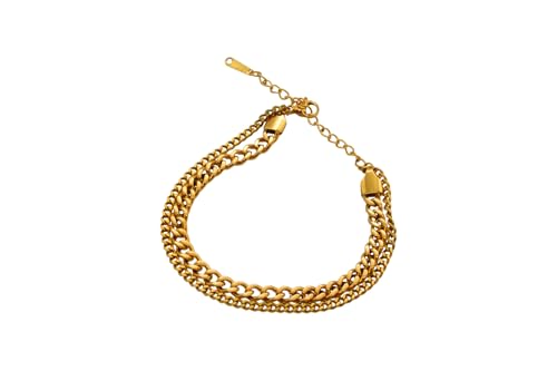 Generic - سوار للنساء من الستانلس ستيل بتصميم متعدد الطبقات مع مشبك لوبستر، مقاس واحد - ذهبي FA103